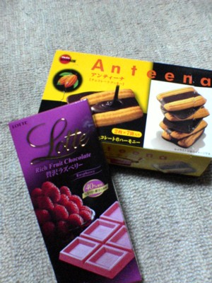 この時期だと仕事が終わる時間もかなり 遅くなるんで、書かずにそのままという・・・ (パートとは言え、厨房組でそこの店はお客がかなり入るとこだしなー 加えて、明日の仕込みでさらに遅くなるという罠・・・) 1月過ぎるまでは放置しまくりかと思えば いきなり日記書いてたりとムラが出そうです(汗)。 とりあえず休日くらいは日記更新しようと思います(・ω・;) 今日と明日が休みなのでゆっくり絵が描けそうですv 脳内にたまってるアトエプイラストを消化していくぞ~w (つか他ジャンルや他キャラも描けww) この間買ってきた「野菜生活100」と「野菜ソムリエのおすすめレシピ」 というジュースを飲んでまったりしています♪ ビタミン補給補給♪♪ ところで、前の話になりますがアストロのDVD見てるときちょうど 加田里が出てきたんですよ。(加田里が出てくる話だったので) で、私は加田里を見た瞬間「ヘタリンだ・・・!」と思ってしまいましたw 加田里じゃなくヘタリンってw 同人サイトで見てきたせいか加田里のイメージ=へたれという イメージになっちゃってる(笑)。 ちなみに、「ヘタリン」の他に「カタリンリン←かびるんるん!?」だとか 「キモ里」とかうっかり考えてしまった・・・。 なんかいろいろすみません(笑)。 いつかは書こうと思ってたネタなので・・・。 以上、野菜ジュースと野菜を連想させる野菜男の話でした~・・・笑。 昨日買ったお菓子ですv 仕事前にちょっと食べようと思って買ったんで。 上の箱が「アンティーナ」というチョコレートクッキーで 下のが最近発売されたばっかりのチョコレート「贅沢ラズベリー」ですv しかし、クッキーはともかくとしてチョコがチョコのパッケージに 見えないなこれ・・・(笑)。まるで高級菓子。 味のほうはクッキーは美味しかったv なんか・・・どーしてもチョコレート系のお菓子選んじゃうみたい。 ちなみに、チョコは箱から出して包装紙を破った瞬間 ガムの匂いがして驚きました・・・; チョコなのに香りはガムって・・・。でもこれの他にも 色んな果物を使ったチョコがあったから、それぞれ香りも味も違うんだろうな~。 そうそう、チョコの味は美味しかったですv ラズベリーの濃厚な味と香りがとてもして良かった! 時々見かけるイチゴチョコと同じ・・・かな? (イチゴやラズベリーって同じ種類だし) 個人的には、洋ナシを使ったチョコが気になってるんで それもまた機会があったら買って食べてみたいな~♪ |