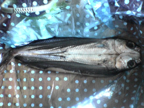 ただそれが言いたかっただけ。w 飛び魚です!じゃーん。 今日、うちのお母さんが飛び魚を2匹もらってきたので写メしました。 みたまんま胸ビレが大きいでしょこの魚。 敵から逃げるためにこんなにヒレが発達したとか。 後、船に乗って鹿児島に遊びに行く事がたまにあるんだけど、 その時船の窓から飛び魚が飛んでる姿を見かける事があります。 海面の上をサーッと滑るようにジャンプします。 あんまり見れないので飛んでいる姿は格好良いです。 この魚、小骨が多くて食べづらいけど天日干しにしてから焼くと美味しいです。 味は淡白がくせがないです。地元ではしょっちゅうよく食べるこの魚。 後は、すり身にしてからつき揚げにするのも美味しいです。 しかしこの飛び魚でっかいなあ・・・・。 タルさん昨日は絵茶ありがとうございました・・・! しっかし昨日はタカミン絶不調だったせいか爆撃が酷かった・・・それも私だけ?! 次は追い出されないようにしたいです。 それと、追記で拍手お返事です。 |